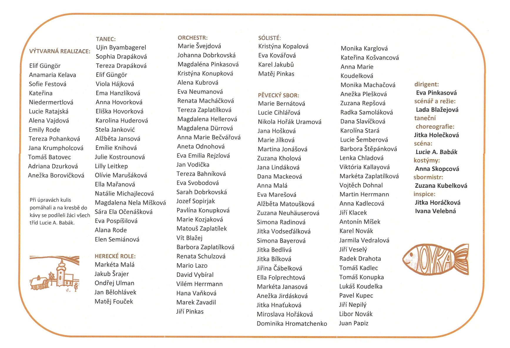 Chceme vám taky ukázat jména účinkujících a těch, kteří celé představení připravili: