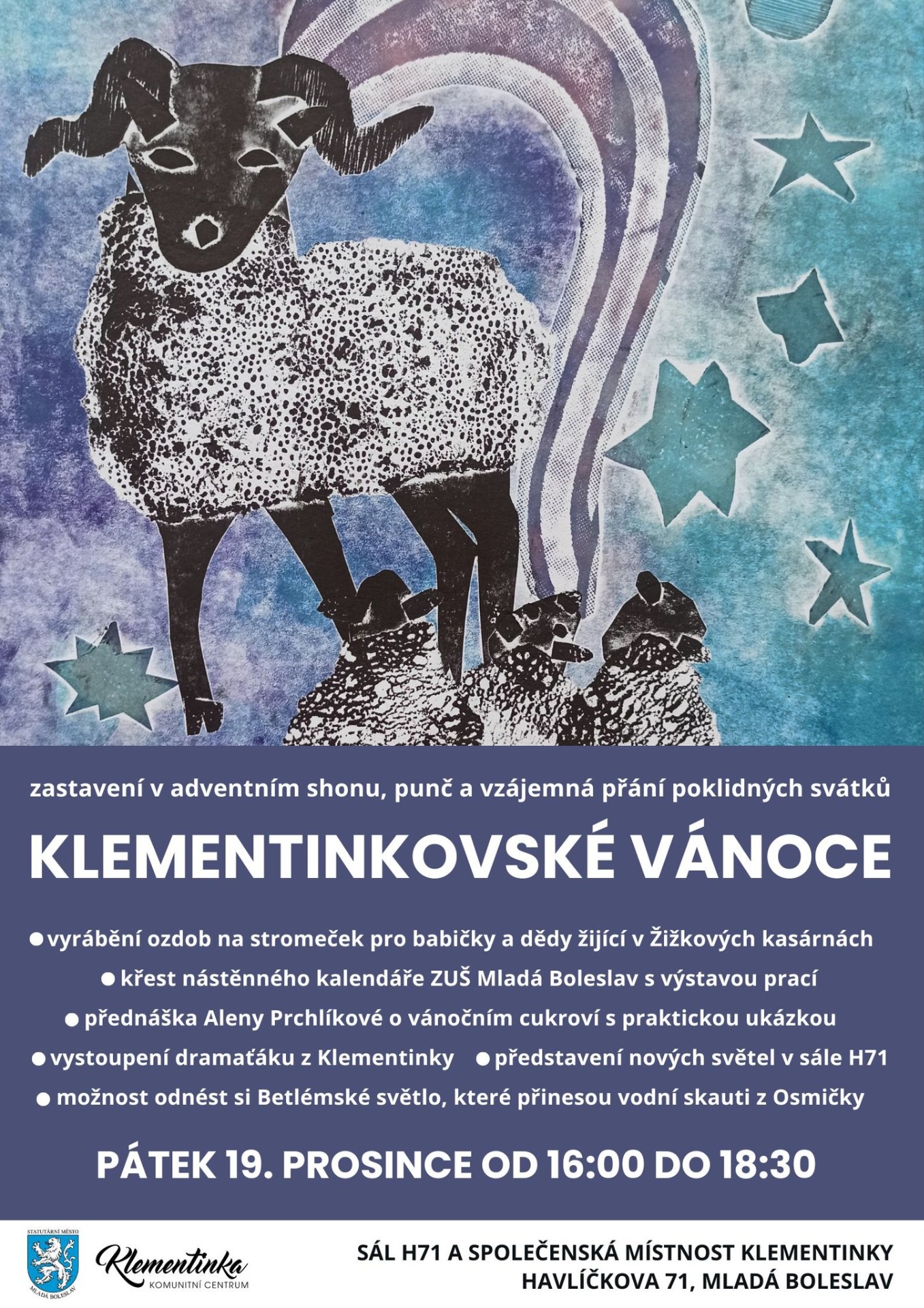 Těší nás, že se dobročinný kalendář ZUŠ dočká v pátek 19.12. svého křtu. Stane se tak v rámci akce Klementinkovské Vánoce, na kterou jste srdečně zváni i s dětmi a vnoučaty do Žižkových kasáren. Bližší informace jsou na pozvánce dále.